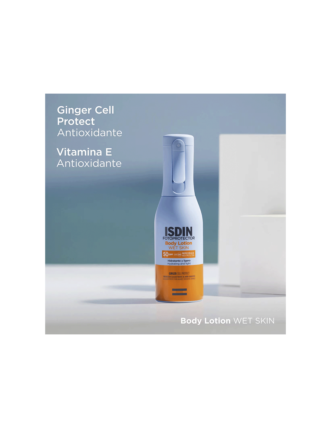 Protege tu piel con Body Lotion SPF 50, el fotoprotector corporal de alta protección resistente al agua que facilita una aplicación cómoda y localizada y se absorbe al instante sin dejar residuo. Su fórmula ligera con Ginger Cell Protect aporta protección celular contra el daño oxidativo.
